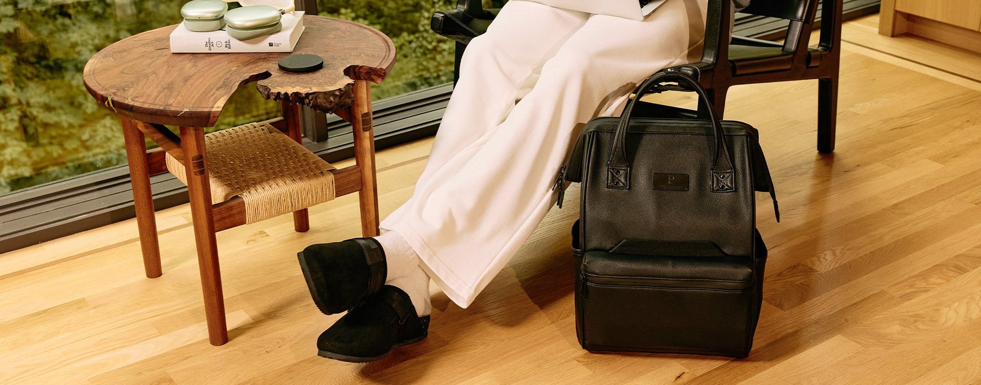 When it came time to decide where our Leatherlite photoshoot would take place, the team tossed ideas into the air ranging from an elegant coastal trip to a playful wedding story. Ultimately, we landed on a luxurious home in NW Portland, built by architect Daniel Kaven. The story we captured follows a couple enjoying a cozy weekend getaway among the trees. We wanted to highlight the effortless ways our Cascade bags weave style and function into everyday moments, whether traveling or simply slowing down at home.