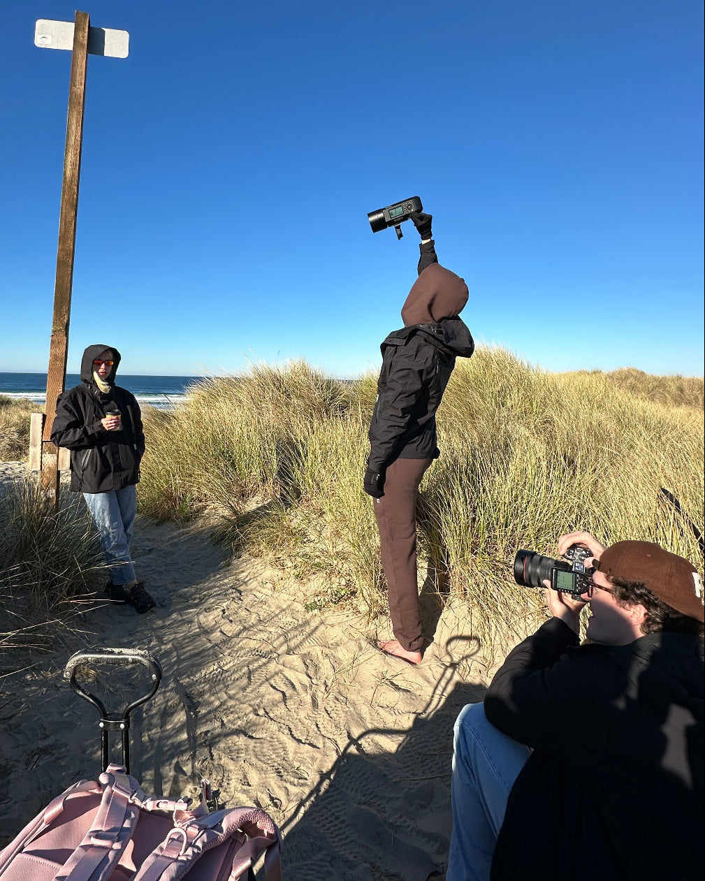 Portland Gear took to the coast earlier this month to capture the Tracer Jacket in the wild, doing exactly what it was made to do. We stayed at a stunning Airbnb in Manzanita, Oregon, which allowed us to explore multiple types of surrounding terrain. From sand dunes and low tides to waterfalls and mushroom-filled forests, we spent 3 days enjoying Oregon's coastal small-town life. And, I speak for the whole group when I say we enjoyed every second of it! Nothing beats trying a new coffee shop in the early morning and finishing the day off at a local pasta spot.