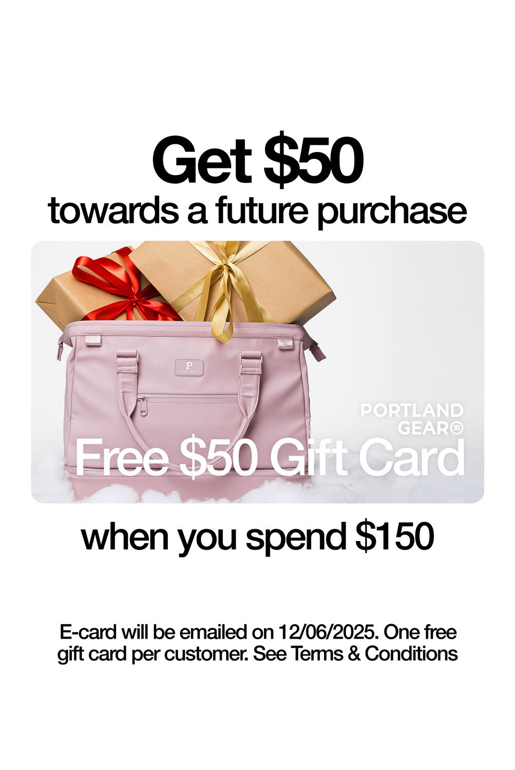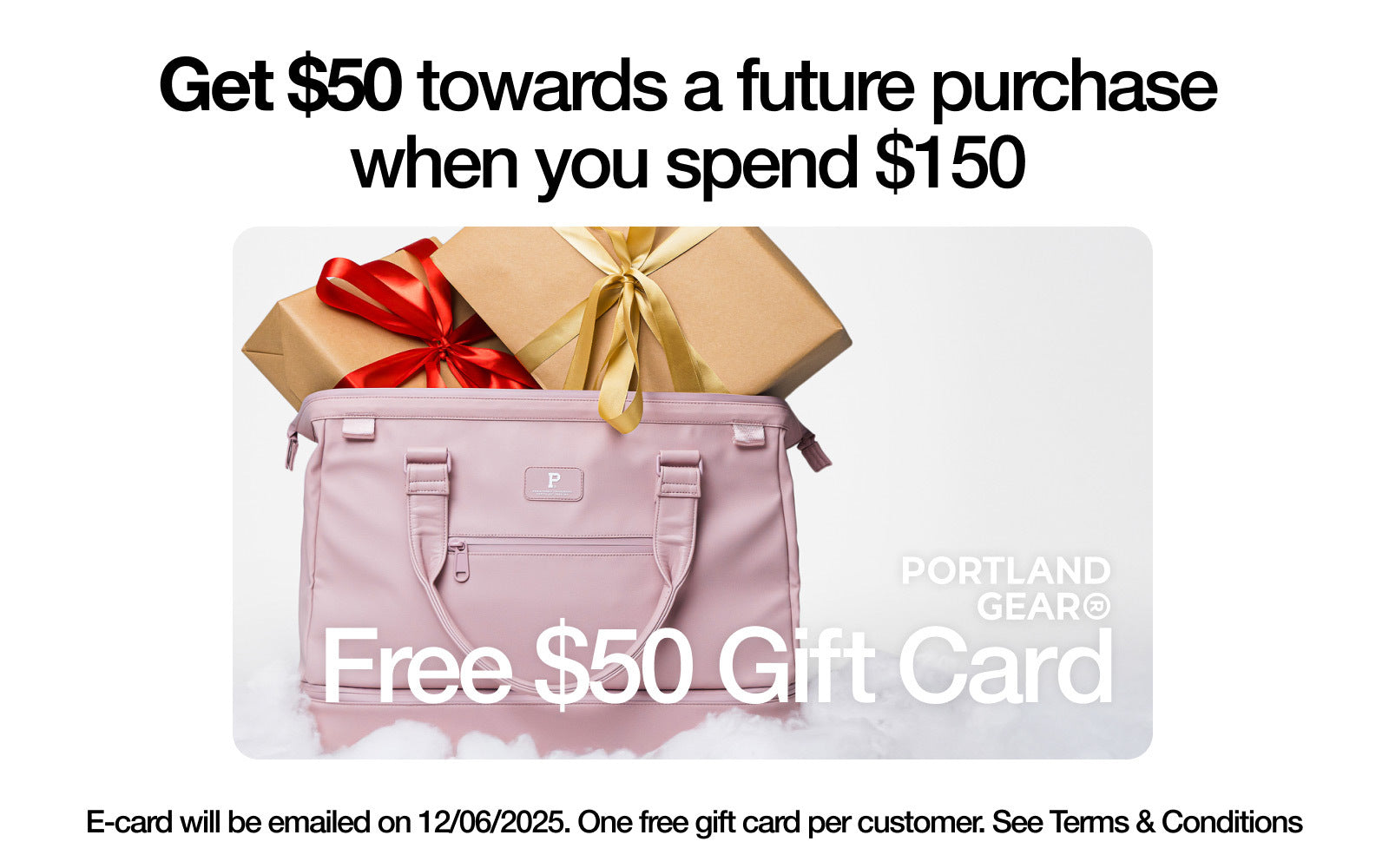 Free $50 Gift Card Promo Terms & Conditions: Offer valid for a limited time. One free gift card per customer. E-card will be emailed on 12/06/2025. Redemption 12/06/2025 to 12/31/2025. No minimum purchase to redeem. $150 minimum threshold applies to purchase subtotal (does not include shipping, taxes, and order adjustments). Returned orders will not be eligible to receive promotion.