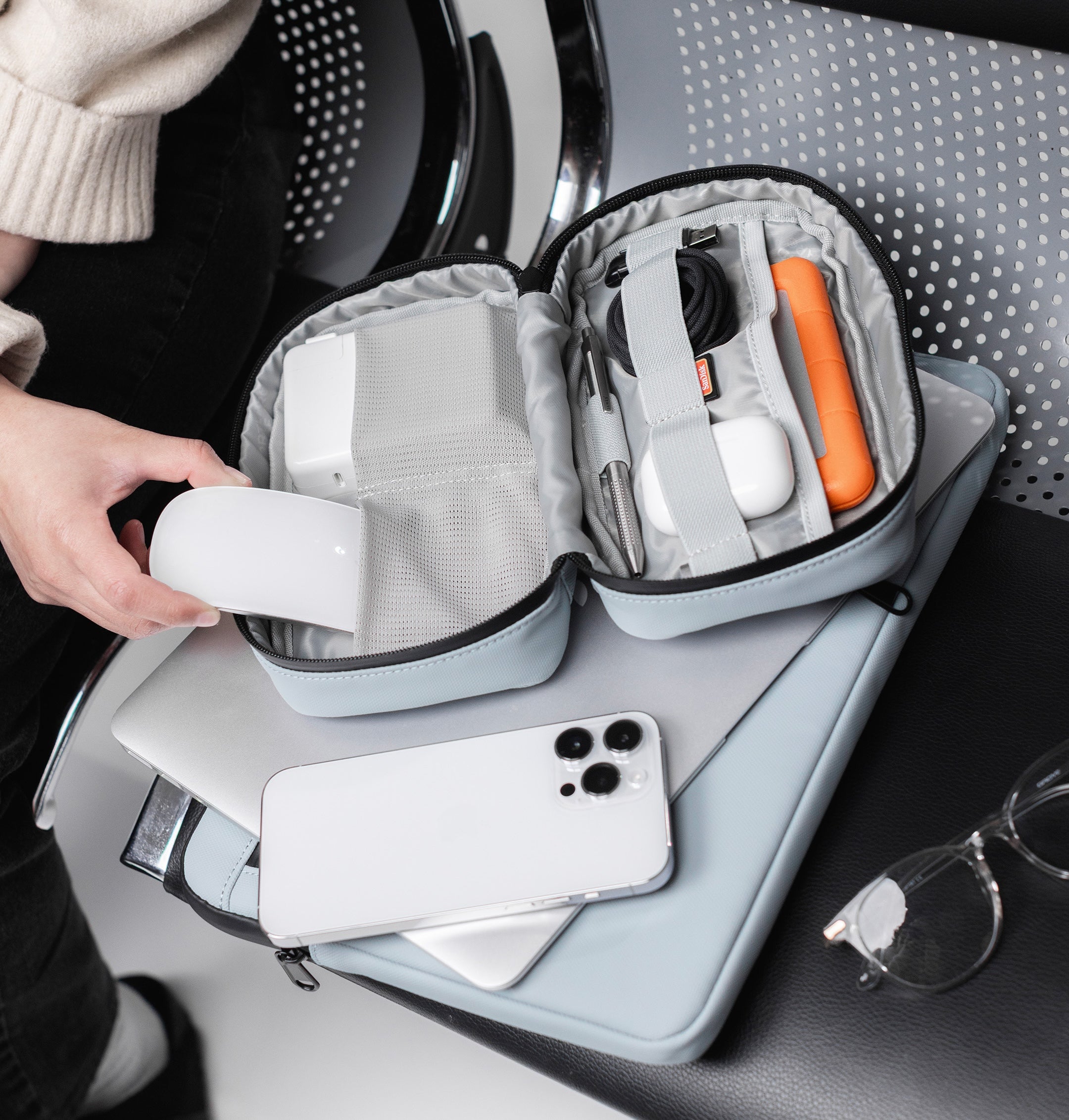 - Compact tech organizer designed to keep your everyday devices and accessories in one place